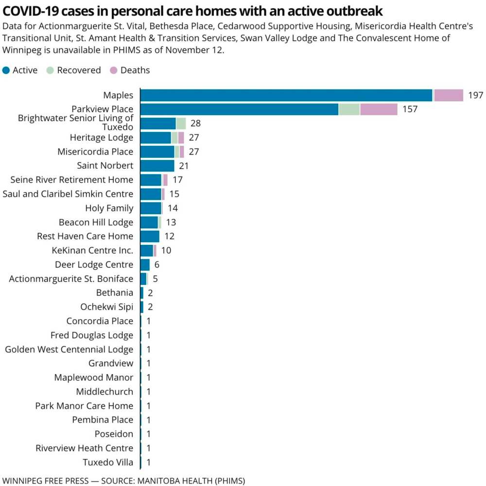 As of Thursday, 28 long-term care facilities in the Winnipeg health region were battling outbreaks of COVID-19.
