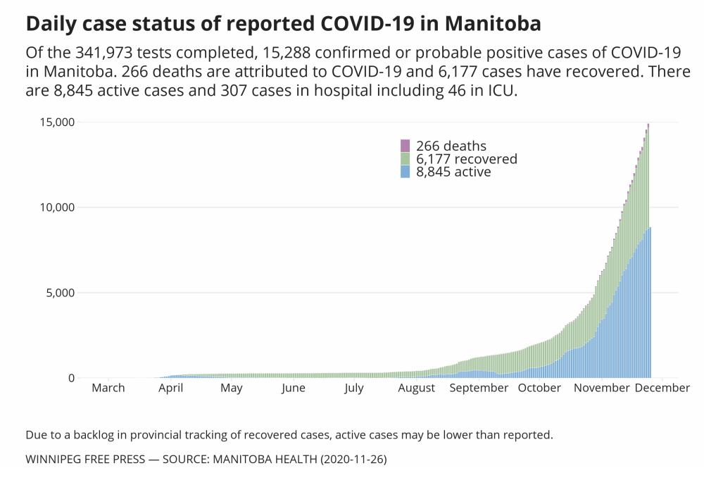 When Manitoba declared a provincewide state of emergency on March 20, there were only 17 reported cases of COVID-19. Schools, child-care centres, gyms and casinos were closed, bars and restaurants could only operate at 50 per cent capacity and gatherings were limited to 50 people.