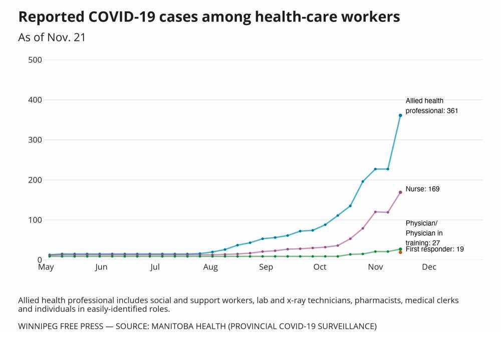 According to data provided to the Free Press by the provincial government, of the 9,486 COVID-19 cases reported so far this November, there have been 1,499 infections in people 18 years old or younger.