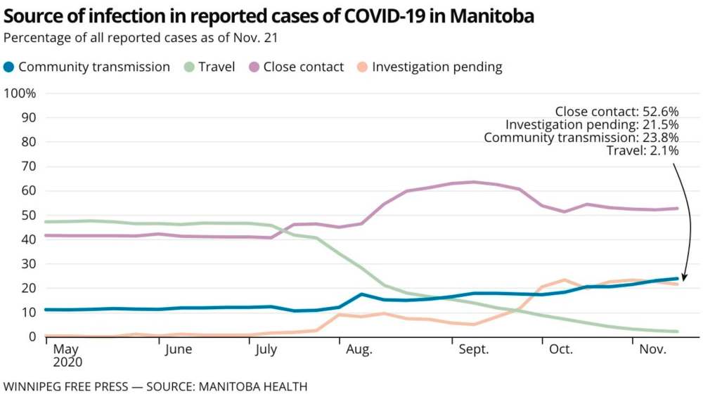 Not being able to quickly determine how someone got sick with the novel coronavirus, especially in congregate settings, can drive community transmission, Moriarty said. However, it’s unclear from the data whether it’s happening in classrooms in Manitoba, she added.