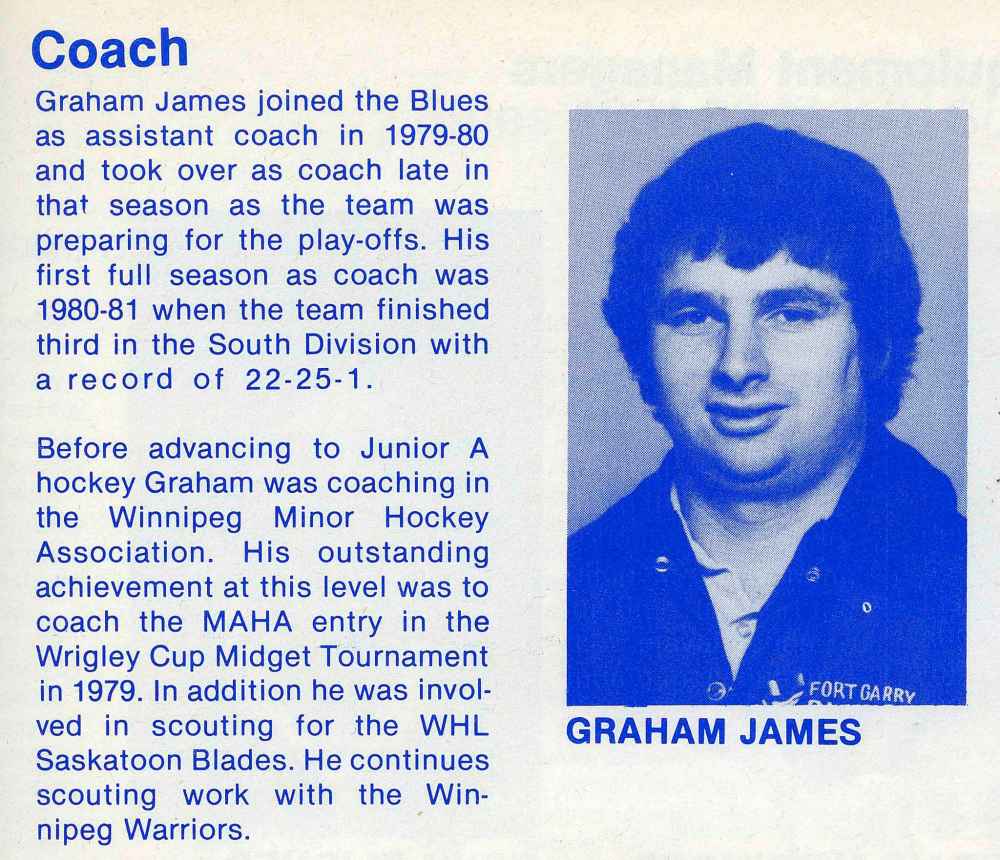 1978-79 — coach of the St. James Canadians’ midget hockey team, scout for Western Hockey League’s Saskatoon Blades