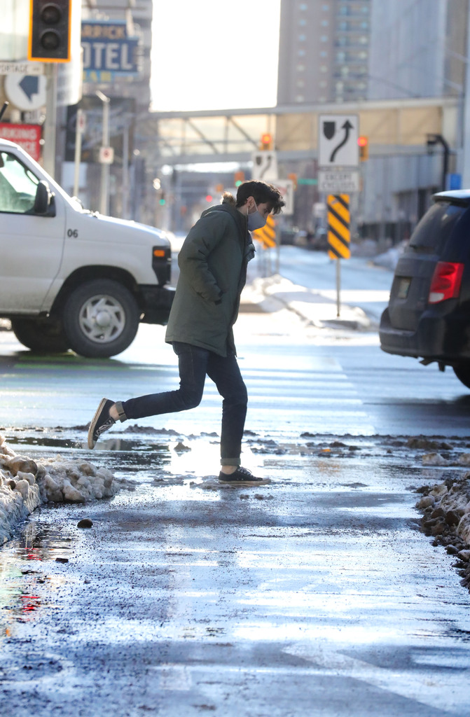 Abnormally warm conditions, which saw Winnipeg’s temperature rise just above the freezing mark Monday, means hard-frozen snow that would typically offer an even walking surface has softened into slick, treacherous little mounds of slush.