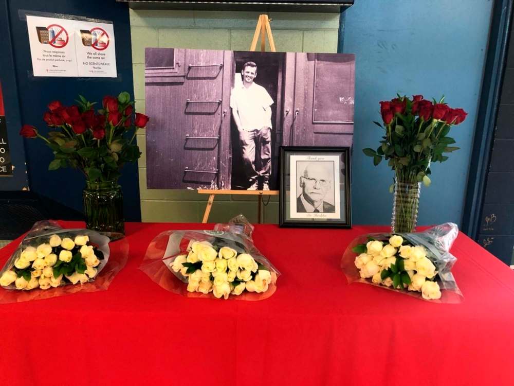 A Canadian flag flew at half-mast in honour of Heshka on the Sisler grounds Thursday. A photo of the long-time principal, accompanied by the message, “Thank you, Dr. Heshka,” and a bouquet of red and white roses were tied to the flagpole.