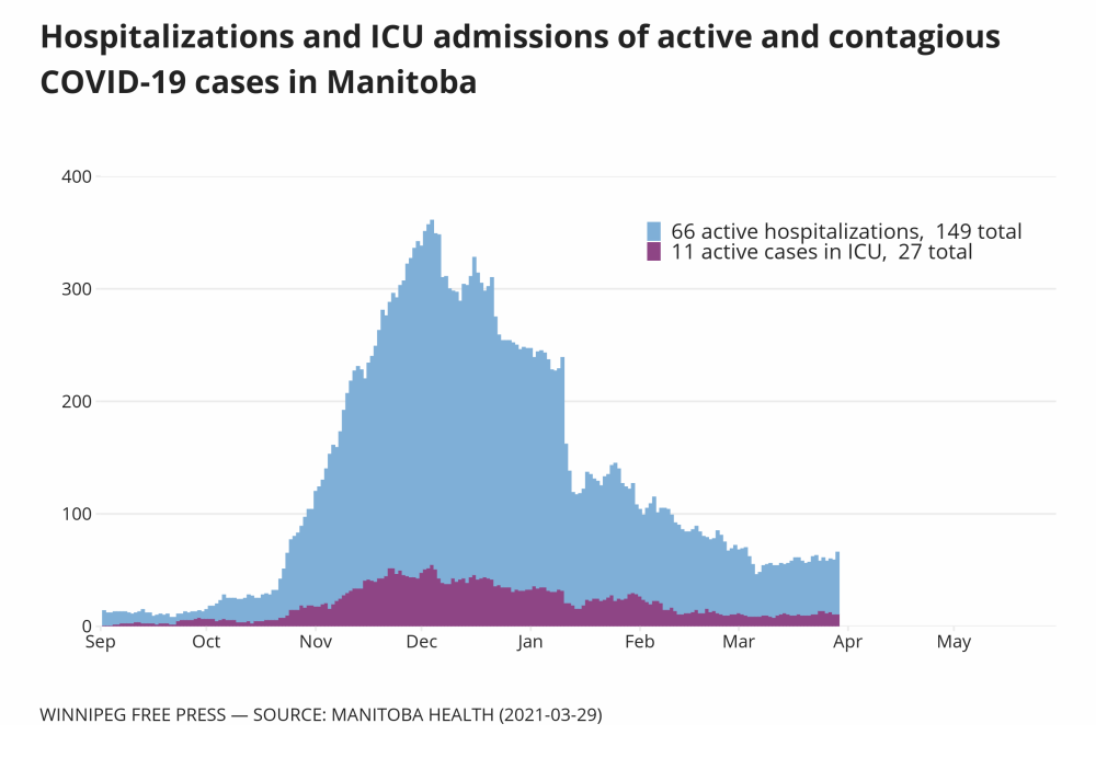 As Manitoba moves closer to tracking the real-time effects of novel coronavirus variants of concern, the proportion of hospitalizations and intensive care admissions is expected to become an important indicator of the province’s pandemic response.
