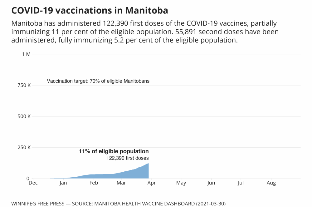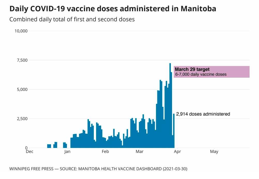 Just as the province ramps up its COVID-19 immunization effort to deliver more than 6,000 doses daily, the Manitoba government has fallen behind in reporting its performance owing to data entry delays.