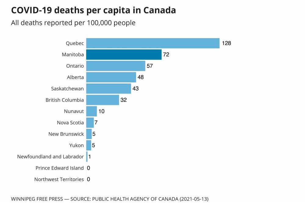 Manitoba’s per capita COVID-19 death toll is just behind Quebec’s.