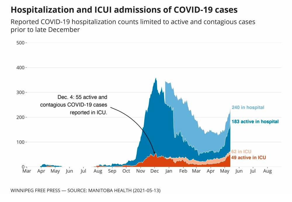 There were 240 COVID-19 patients in Manitoba hospitals; 62 of them in intensive care. The ICU number will likely surpass the second-wave peak very soon, said attending physician Dr. Anand Kumar.