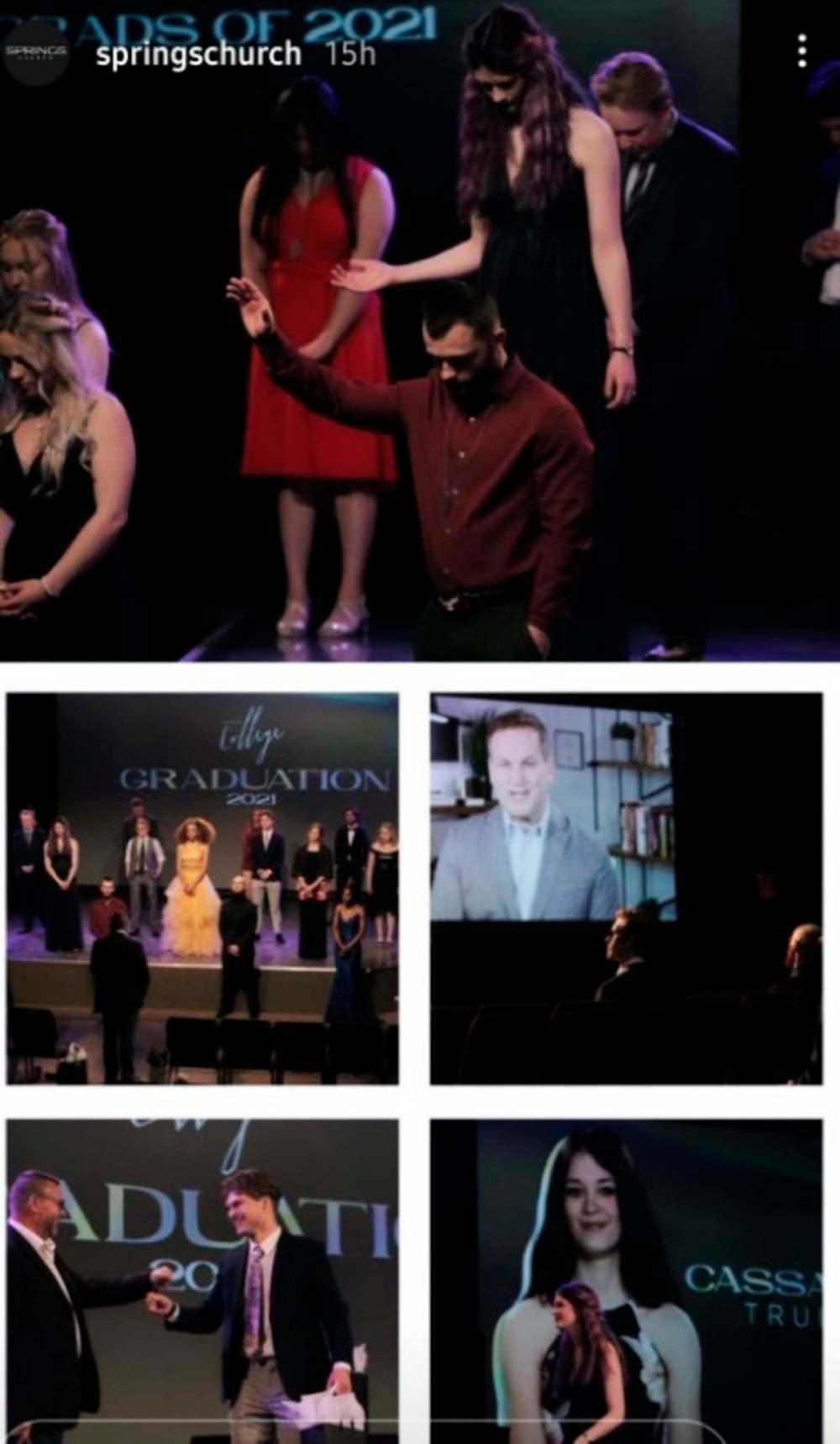 Last month, Springs Church posted photos to social media showing a maskless, indoor graduation ceremony held at its college May 20. More than a dozen people could be seen on stage, along with others in the audience. Masks were not worn in the pictures.