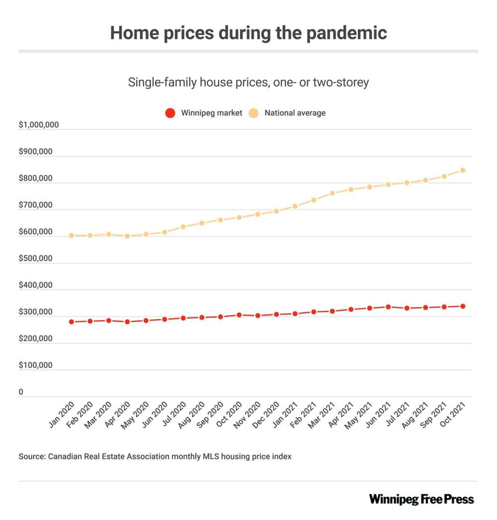 WINNIPEG home prices have jumped almost 18 per cent since the start of the COVID-19 pandemic, according to fresh data that suggest the city may have bucked national trends by plateauing.