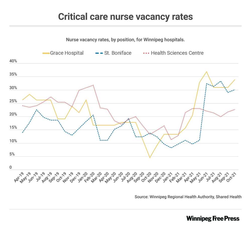 St. Boniface Hospital’s intensive-care unit’s nurse vacancy rate teetered just above 30 per cent.
