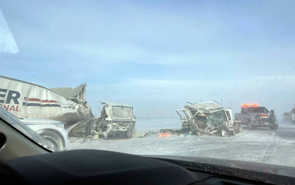 In one incident, five vehicles collided with a tractor-trailer that had jackknifed, said RCMP spokesman Sgt. Paul Manaigre.