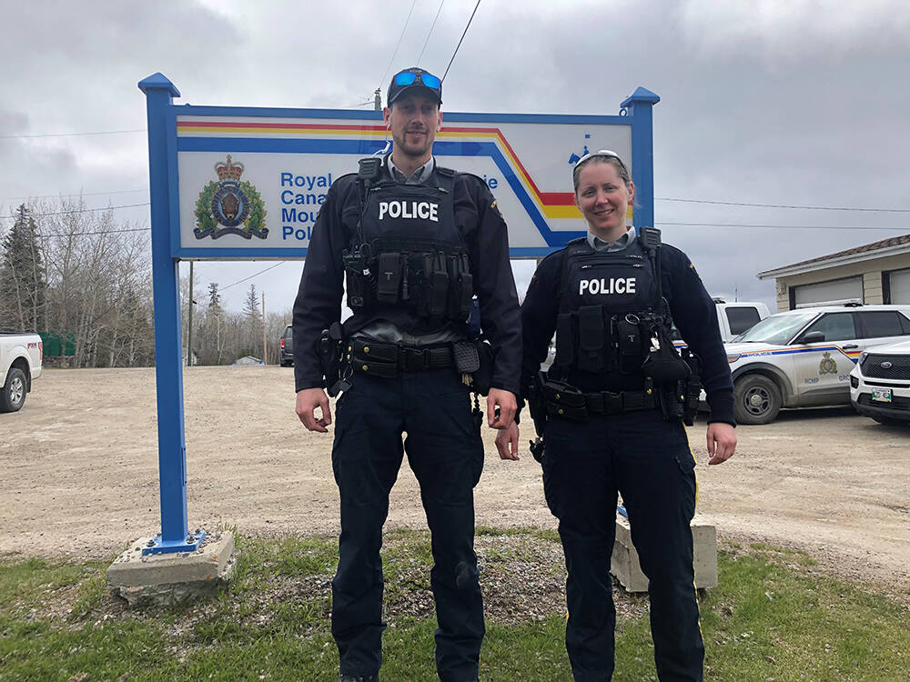 Constables Dylan Fedrau and Lindsay Bawn were the first responders to a call at a home in Kinosao Sipi First Nation.