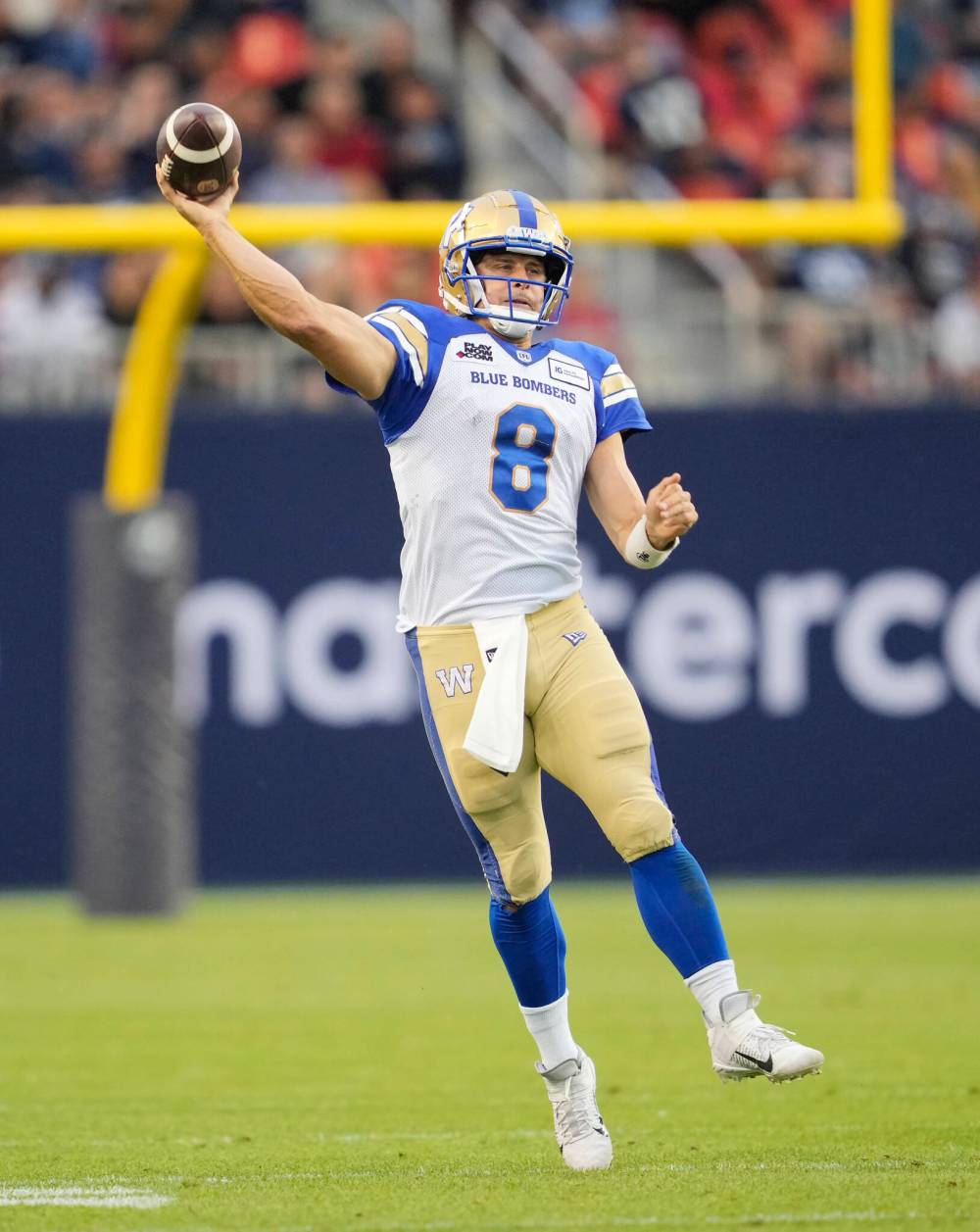 Each club would score a field goal before halftime – a 15-yarder from Marc Liegghio for Winnipeg, a 52-yard kick from Toronto’s Boris Bede – and the defence continued to roll, forcing a turnover on downs. Andrew Harris, who was playing his first game against his former team since a public breakup over the winter, was stuffed on third-and-1 from Winnipeg’s 25-yard line.