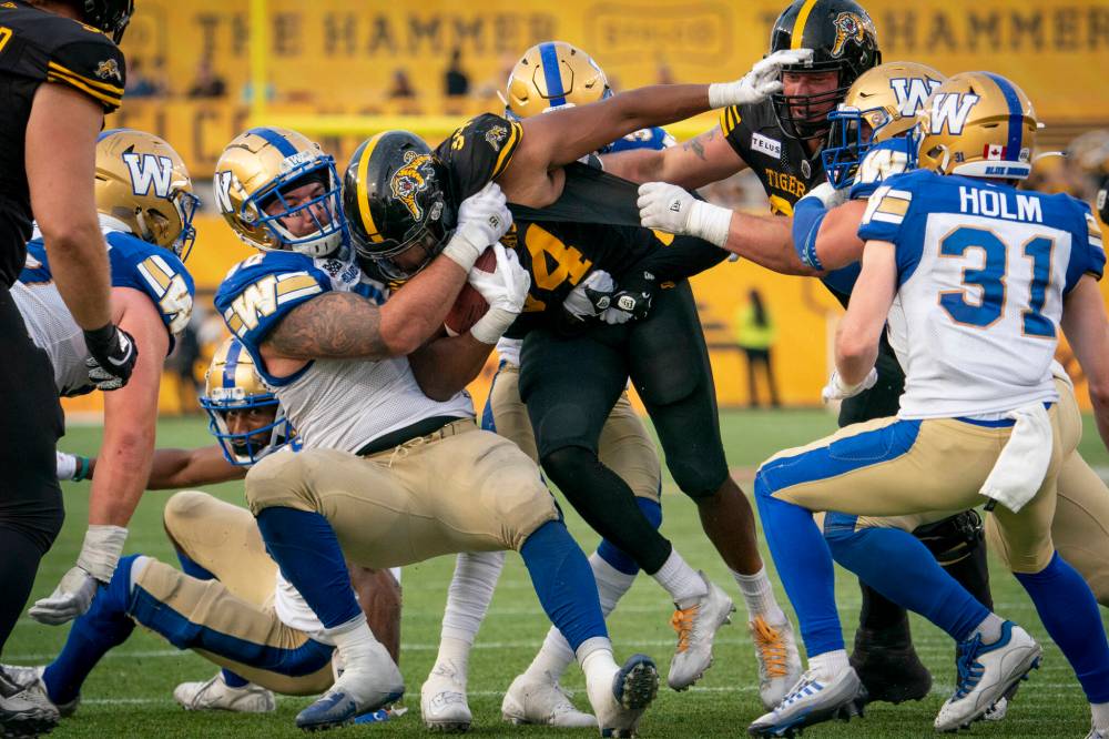 After the offence put together back-to-back touchdown drives to cut Hamilton’s lead to 10 points with more than nine minutes remaining in the fourth quarter, Winnipeg desperately needed a stop from its defence. Instead, the Tiger-Cats answered back with a 14-play, 90-yard touchdown drive that drained the clock from 9:17 to 1:57 — a total of seven minutes and 20 seconds.