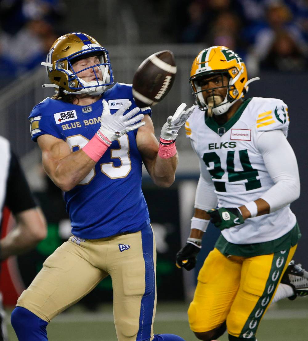 Winnipeg Blue Bombers’ rookie sensation Dalton Schoen leads the CFL with 1,357 receiving yards and 15 receiving touchdowns heading into the final game of the regular season.