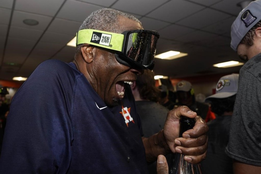 Houston’s coaching and training staffs circled around Baker after Nick Castellanos flied out to end it, jumping up and down, and chanting “Dusty! Dusty! Dusty!” in the dugout before they joined the players on the field.