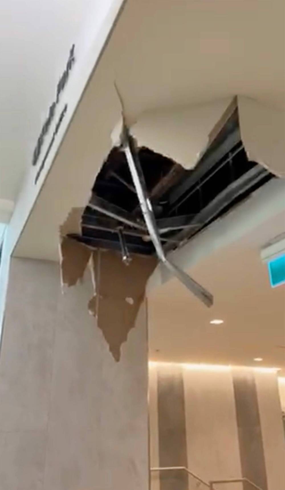 Videos of the aftermath appear to show blocks of concrete and debris on the floor and a gaping hole in the second-floor’s ceiling, across from the escalators at the entrance to the food court.