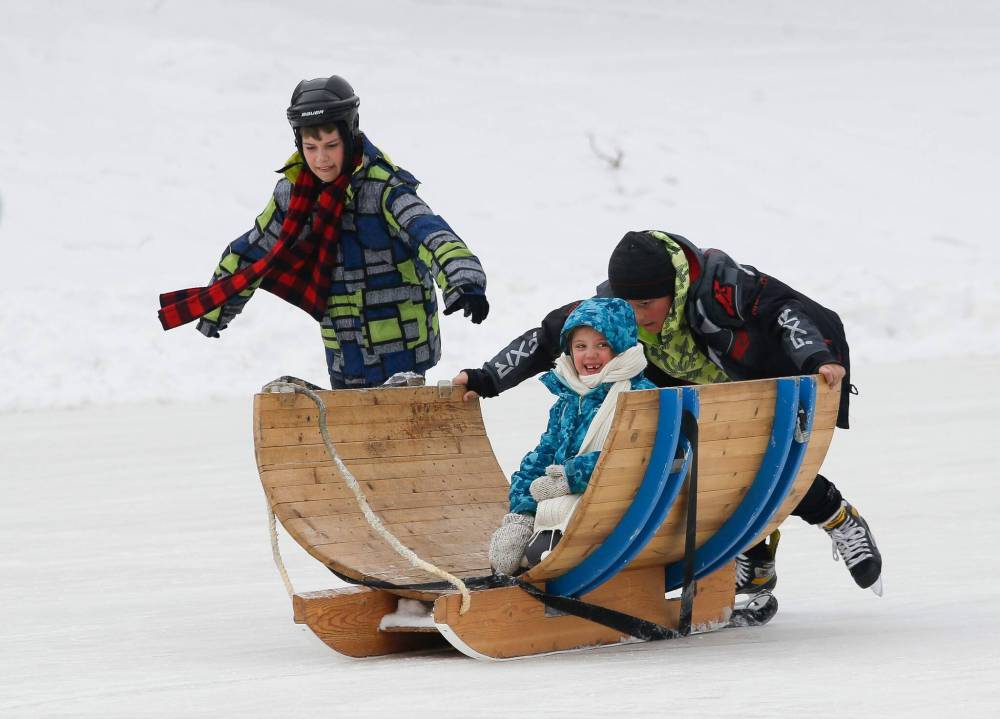 JOHN WOODS / WINNIPEG FREE PRESS Gavin, left, and Etta Morrisseau with their cousin Ondray Dubuc-McDonald enjoy a sleigh ride and skating.