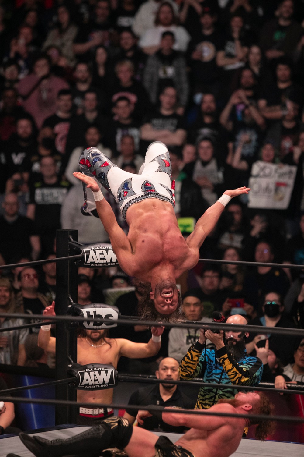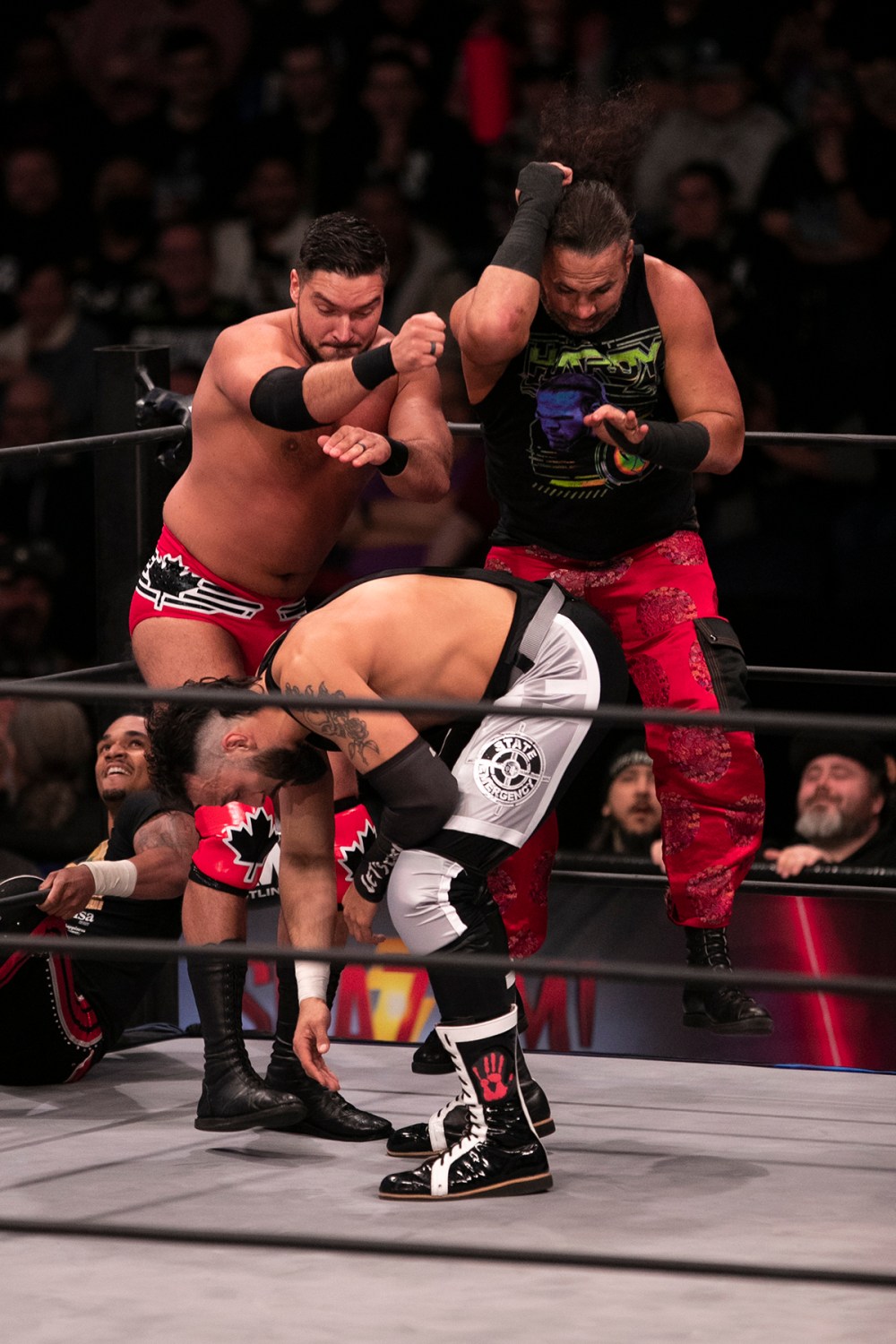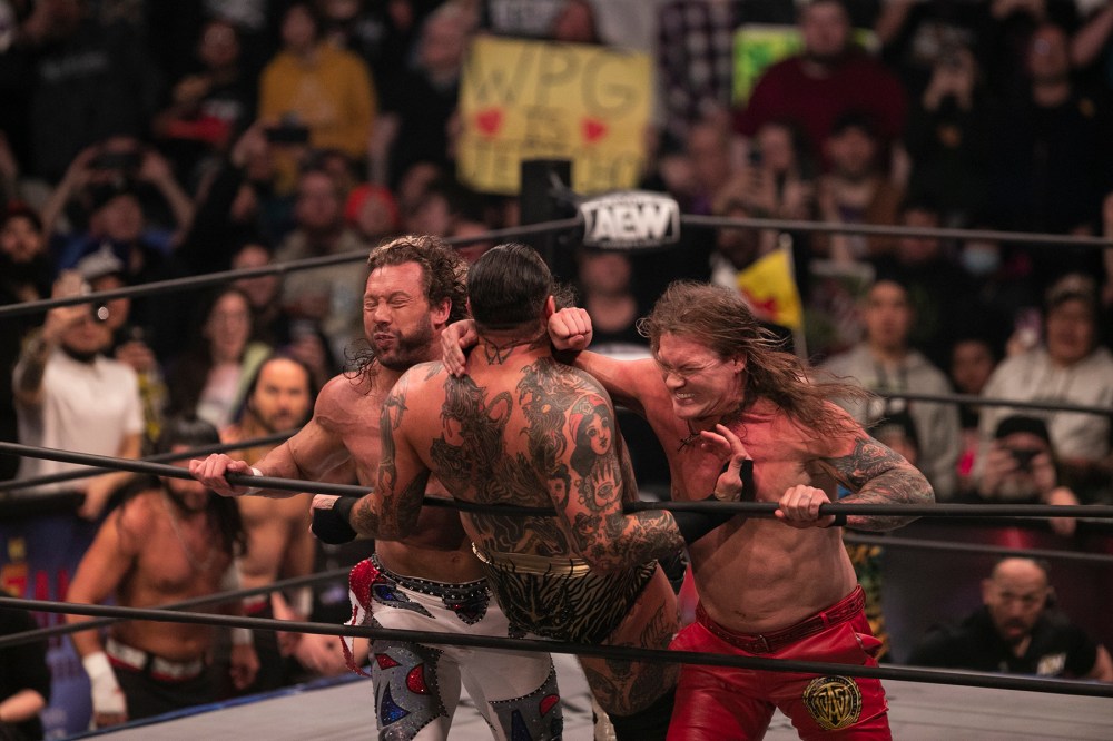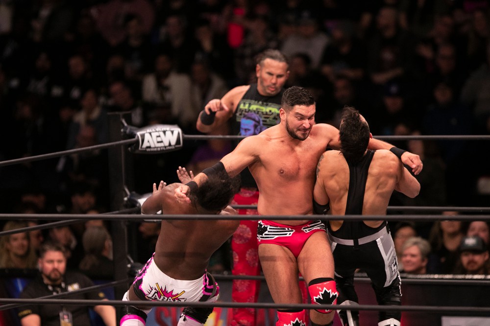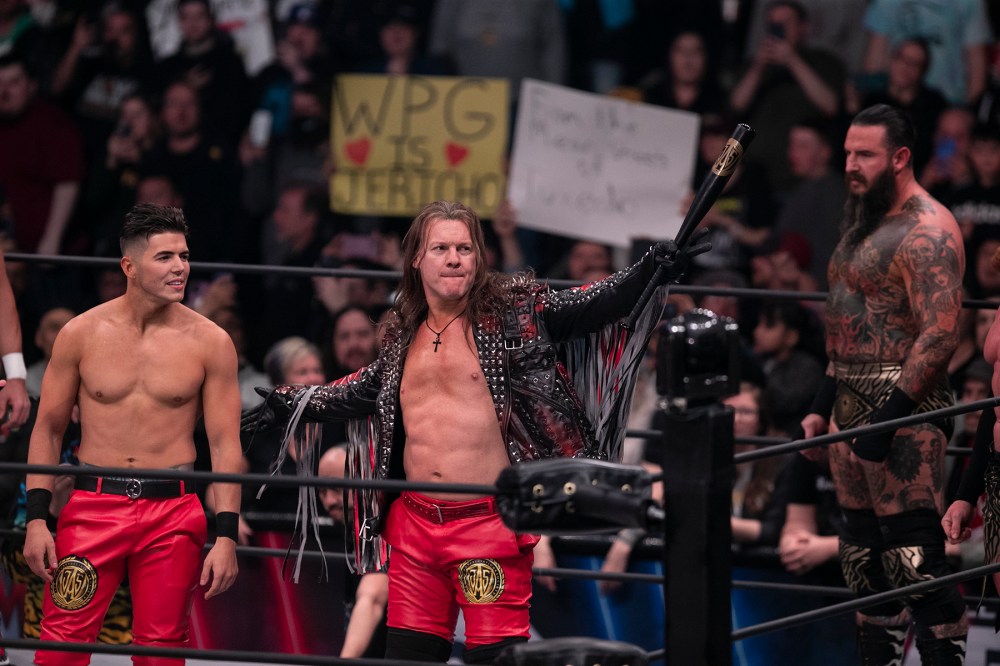 Jericho teamed with Daniel Garcia and Sammy Guevara (Jericho Appreciation Society) in a trios match, facing the House of Black and the Elite, the latter team featuring Kenny Omega in AEW’s third-ever show in Canada.
