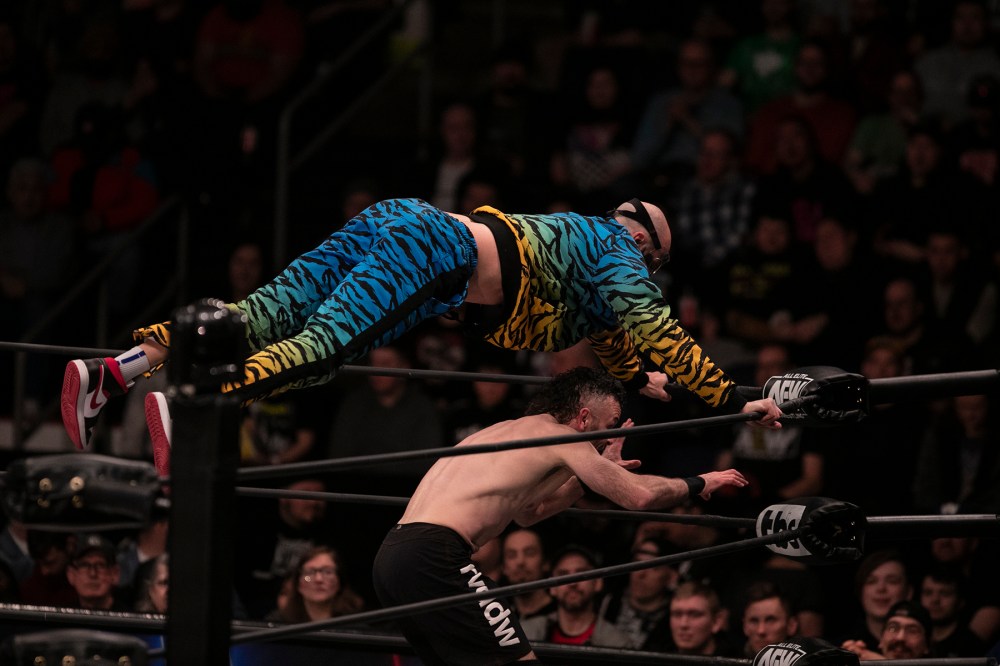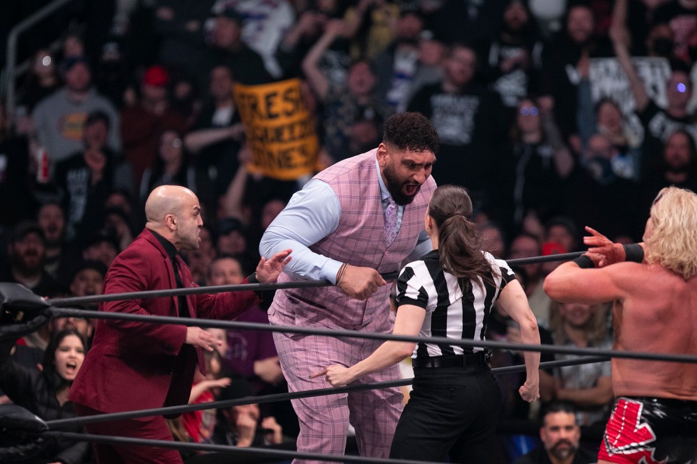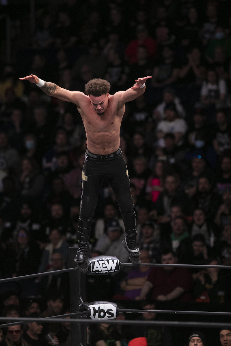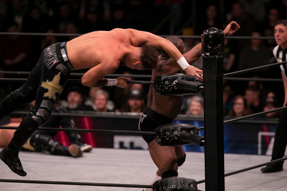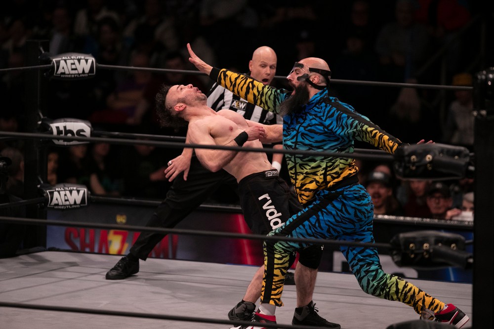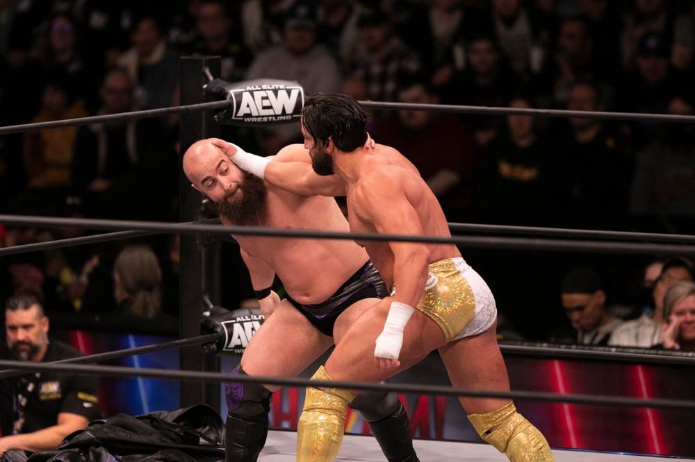 Jericho teamed with Daniel Garcia and Sammy Guevara (Jericho Appreciation Society) in a trios match, facing the House of Black and the Elite, the latter team featuring Kenny Omega in AEW’s third-ever show in Canada.