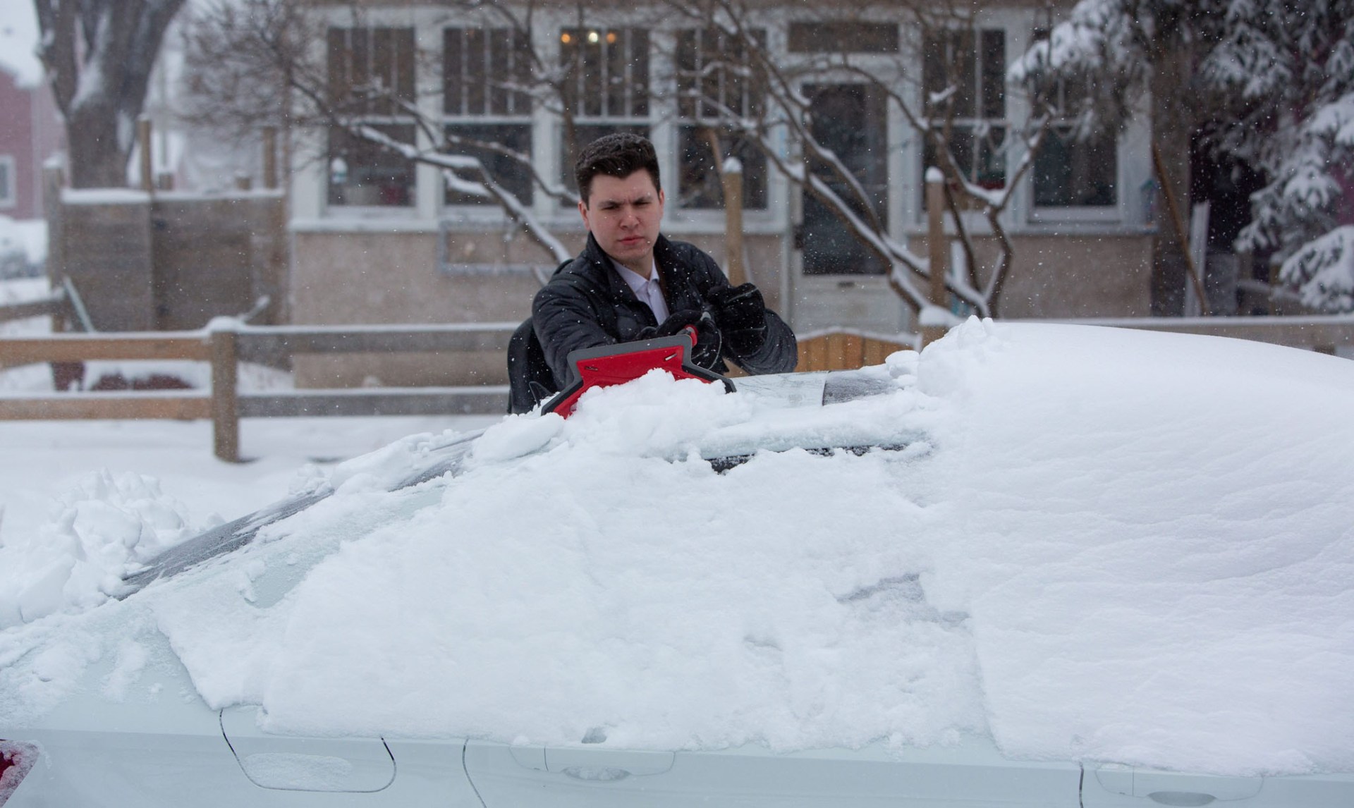 The two Winnipeg post-secondary students figured they were going to be late for afternoon classes Wednesday when they saw the volume of snow that had accumulated on Good Street in front of their apartment building — and on Leo Paul’s new car.