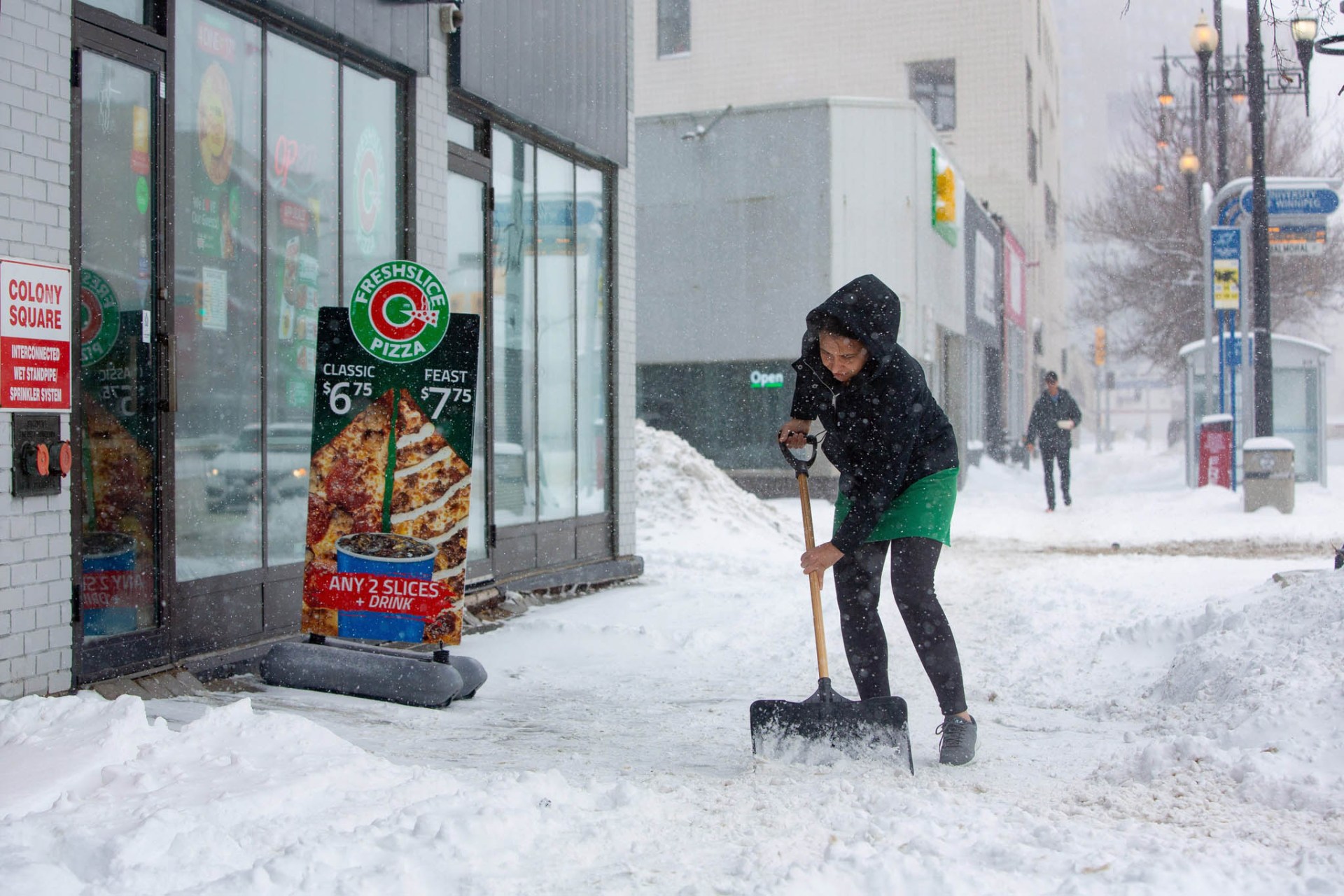 Down the road, the owner of a Portage Avenue pizza shop that caters to University of Winnipeg students said she was expecting the sidewalk to have been plowed by the time she came in around 10 a.m.