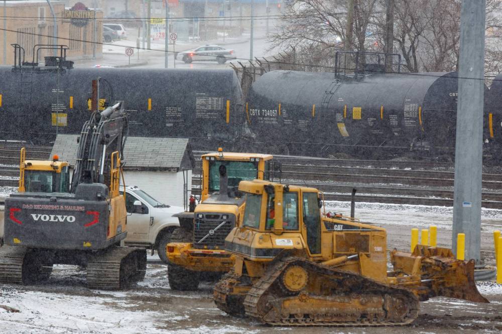 A hazardous material team and drone were used to assess the site, where it was found the cars were carrying bitumen — an asphalt oil product. The material is not hazardous and not easily flammable and there does not appear to be any leaking out of the cars, WFPS assistant chief Scott Wilkinson said.