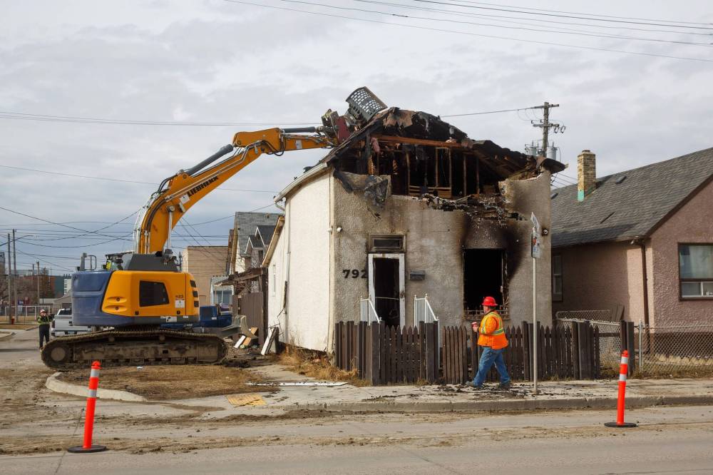 MIKE DEAL / WINNIPEG FREE PRESS After a second fire in six months Wednesday, a now-vacant Logan Avenue home is being demolished.