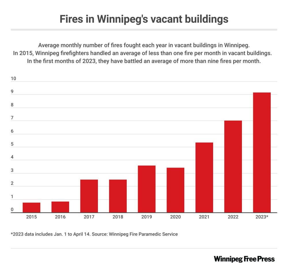 Numbers provided by the Winnipeg Fire and Paramedic Service reflect her concerns. The number of fires in vacant buildings the WFPS is responding to has grown exponentially since 2015.