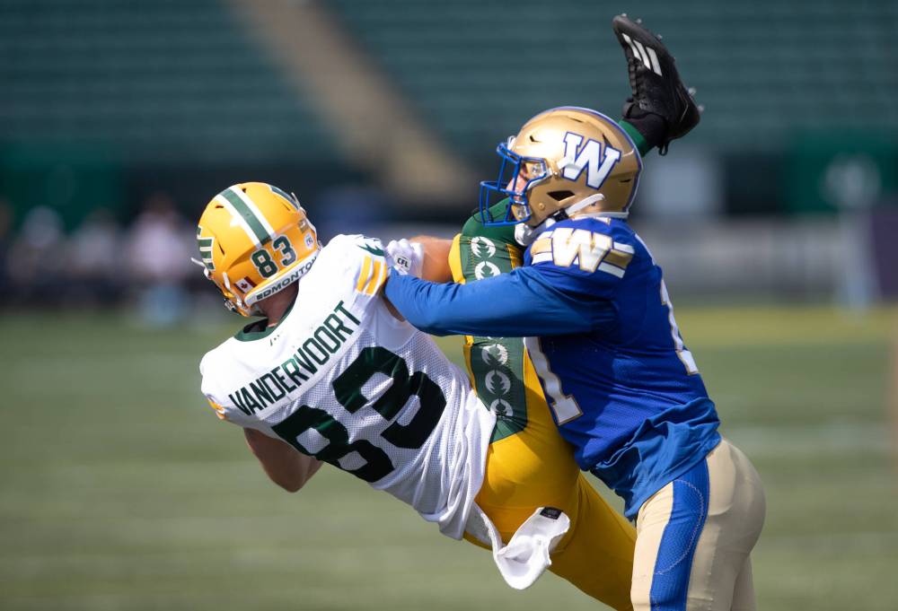 9) Edmonton opened with No. 1 QB Taylor Cornelius, who finished 6-for-9 passing for 53 yards, before making way for Tre Ford and Kai Locksley. Locksley, who saw the most reps, going 15-for-22 for 183 yards, threw the only passing TD for the Elks – a nine-yard throw to Raphael Leonard that cut the Bombers lead to 25-23 late in the fourth. Edmonton could have tied the game but failed two-point attempt. Ford had 29 rushing yards on seven carries and Edmonton’s only rushing TD, which came on a seven-yard run up the middle, while completing eight of his nine passes for 38 yards. Ford’s rushing score ended a particularly dominating series for the Elks that lasted nearly the first nine minutes of the third quarter.