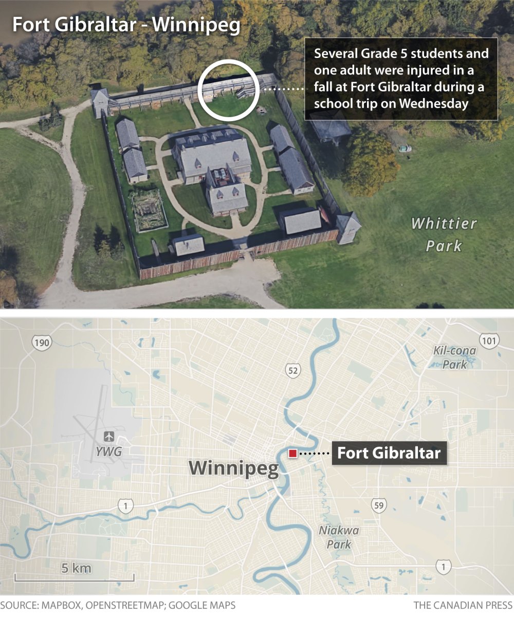 Students who were on a field trip to Fort Gibraltar heard a cracking noise moments before a platform collapsed and sent about 30 people, mostly children, falling four to six metres Wednesday morning.