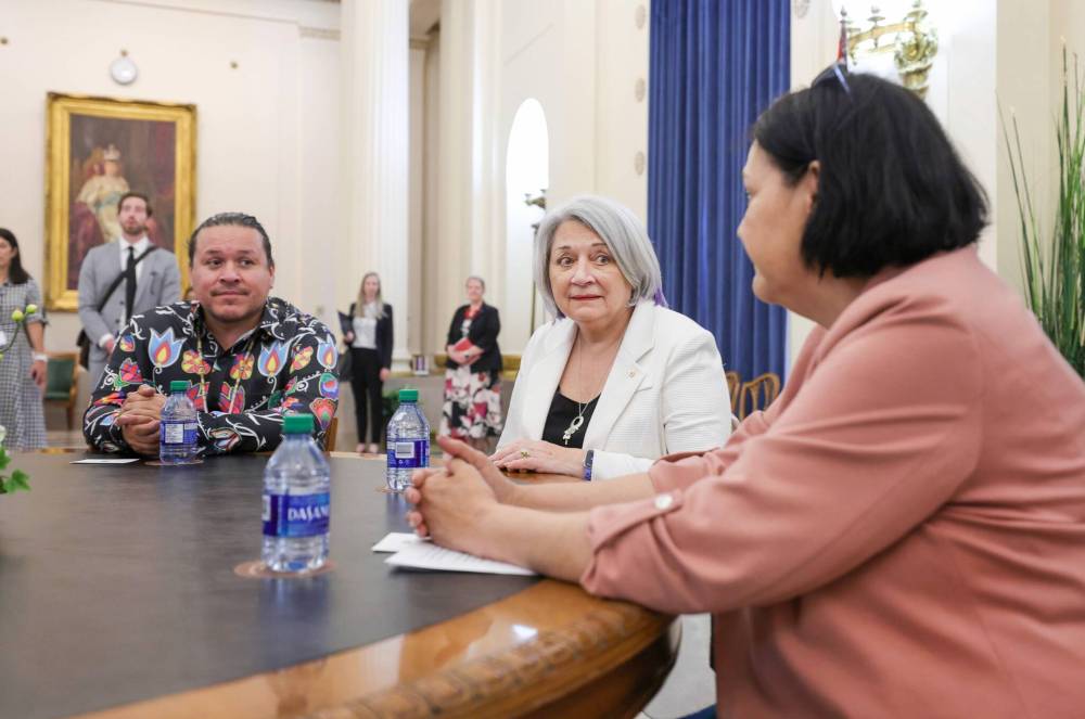RUTH BONNEVILLE / WINNIPEG FREE PRESS Governor General of Canada, Mary Simon, with AMC Grand Chief Cathy Merrick to her left and Jerry Daniels Grand Chief of the SCO, during round table discussion with Indigenous leaders Wednesday.