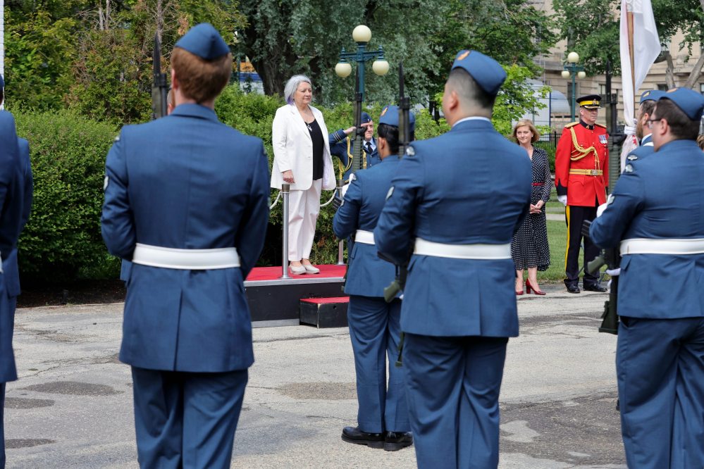 Simon’s three-day sojourn to Manitoba continued Wednesday with a stop at the Legislative Building, where she was welcomed with a vice-regal salute by a quarter guard from 17 Wing outside Government House, and within sight of the statue that has been repeatedly vandalized.