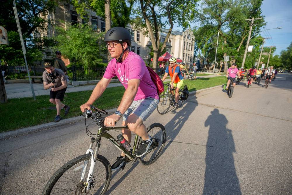 Winnipeg Mayor Scott Gillingham, shown taking part in an event to kick off Bike Week on Monday, believes it’s time for a new bike registry in the city.