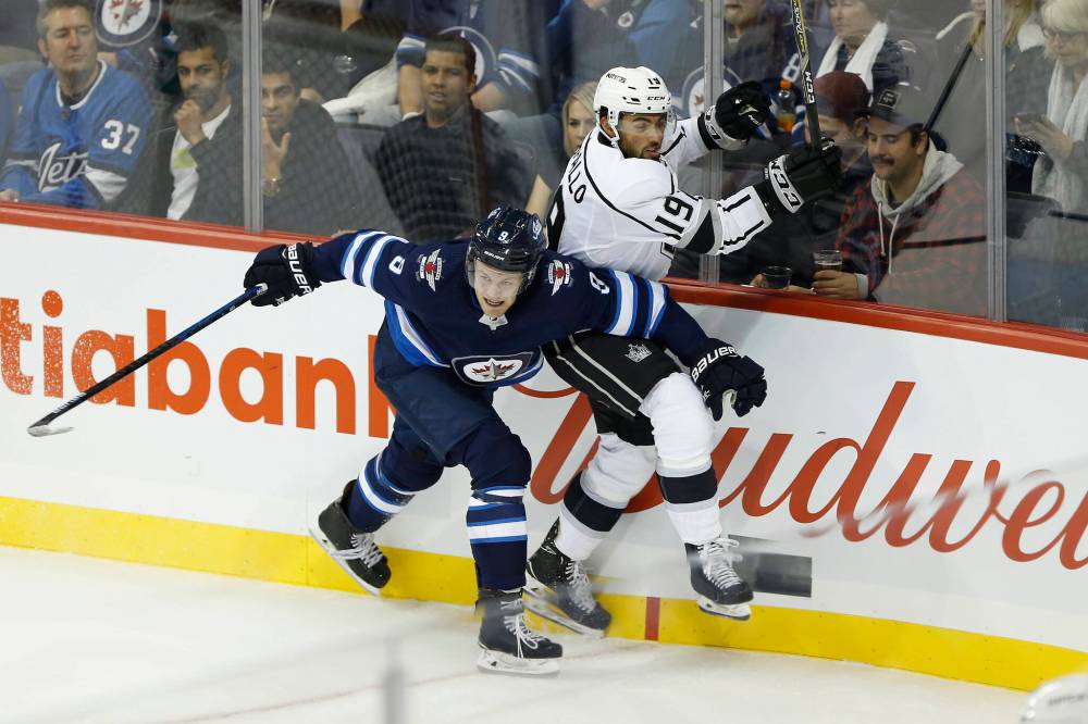 JOHN WOODS / WINNIPEG FREE PRESS FILES Alex Iafallo (19) stands 6-0 and weighs 200 pounds. He is signed for two more seasons at US$4 million per year and had 36 points (14 goals and 22 assists) in 59 regular-season games. He missed the other 23 with injury.