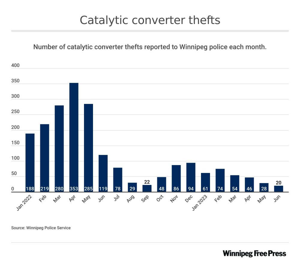 Winnipeg police previously said 1,801 catalytic converters were stolen in 2022, compared with 1,564 in 2021, and 284 in 2020.