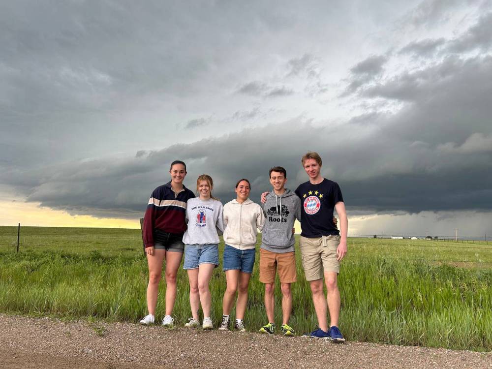 L-R: Maya Desrochers, Jordana Dwornick, Shayla Trippier, Eric Zwarich and Sergiyy Myastkivskyy took part in a field trip during which they chased tornadoes over an expanse of 6,000 kilometres.
