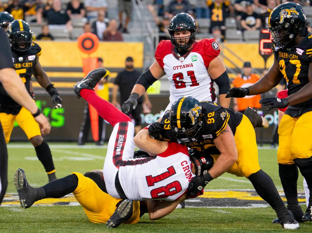 The Redblacks have lost two starters in their last two games. Tyrie Adams, who replaced a struggling Nick Arbuckle, tore his ACL in Week 4, while No. 1 QB Jeremiah Masoli, in his first game back from a season-ending knee injury suffered last July, tore his Achilles last week, putting his career now in question.
