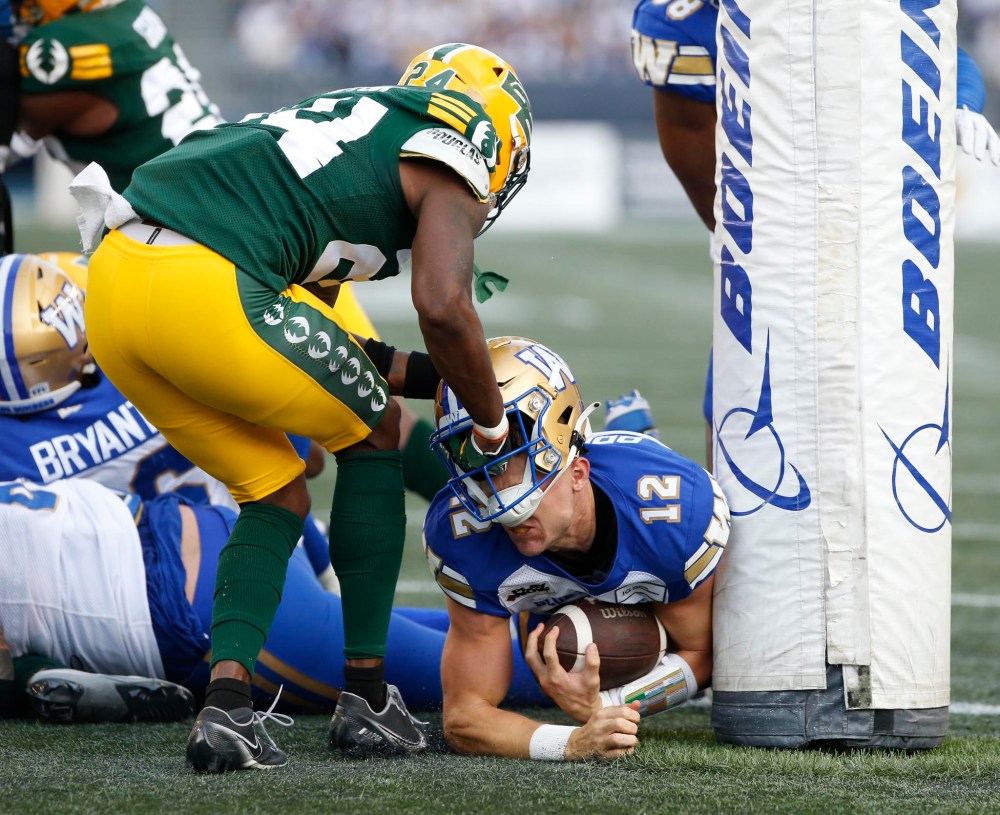 Winnipeg’s defence was once again up to the challenge. Defensive tackle Ricky Walker sacked Cornelius, pushing Edmonton out of field goal range, leaving it to punt.