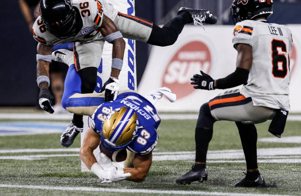 The Bombers flipped the script on Thursday, forcing the first of three turnover-on-downs on the night on B.C.’s second drive. The defence had five takeaways – including interceptions by Alexander and Demerio Houston, who reeled in his league-leading sixth pick – and gave up just 230 yards of offence.