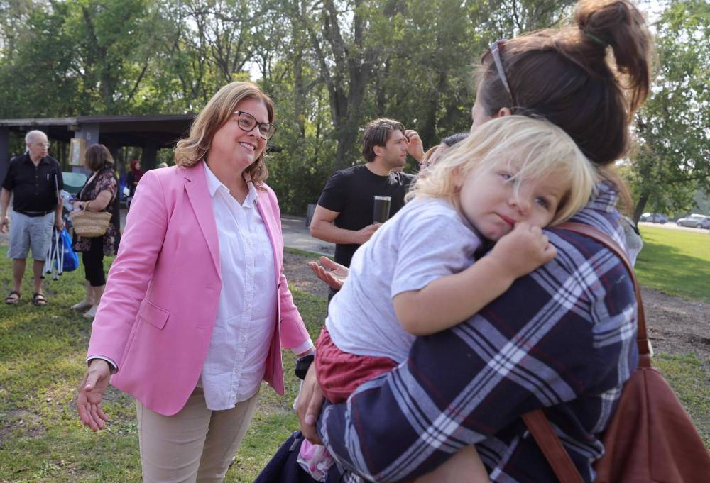RUTH BONNEVILLE / WINNIPEG FREE PRESS Premier Heather Stefanson made a campaign promise at St. Vital Park Thursday that her party would provide new rights to parents whose children attend public schools.