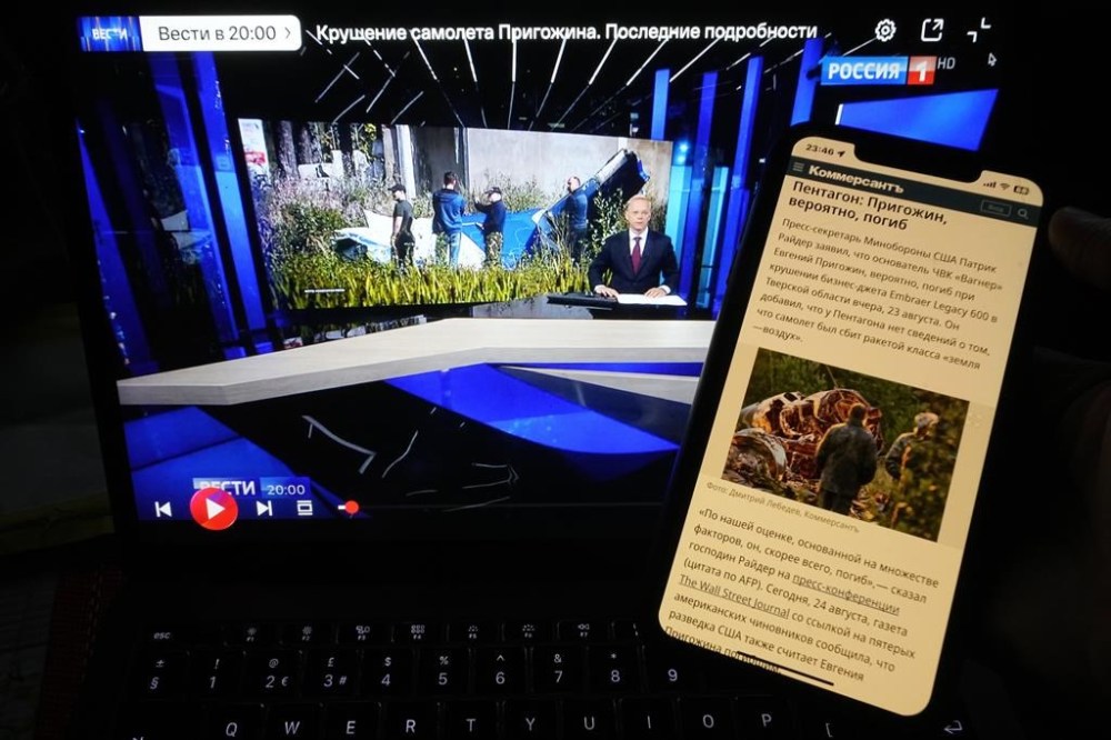 LONDON (AP) — While news that Russia’s Wagner mercenary chief was believed dead in a plane crash dominated world reports Thursday, along with speculation that it was linked to his June mutiny, Russian state media painted a very different picture.