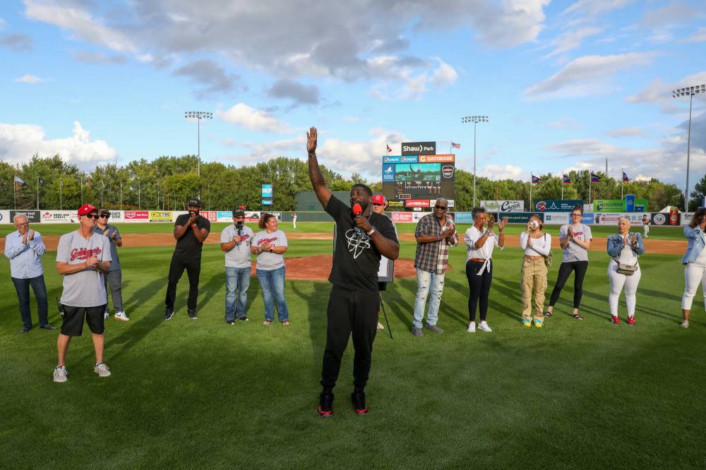 The Goldeyes retired Abercrombie’s No. 11 jersey on Aug. 12 before a packed house at Shaw Park.