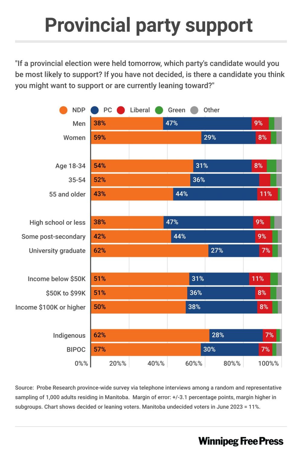 A Free Press-CTV poll conducted by Probe Research has found half of respondents who voted Liberal in the last provincial election (2019) plan to cast a ballot for the NDP on Oct. 3.