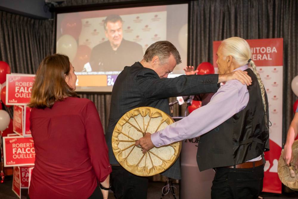 After Lamont stepped down, Robert-Falcon Ouellette, who ran for Southdale under the Liberal banner, led a warrior song “about rising with courage.” Emotional supporters put their hands on Lamont’s shoulders and gathered in a circle to listen to the song and drum. Many attendees left the hotel with puffy-eyes.