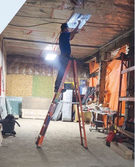 Tao Zhang upgrading a T5 fixture to LED | Photo by Darcy Finley