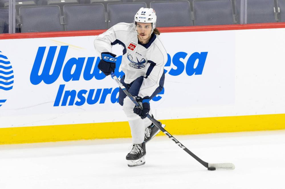 Manitoba Moose forward Parker Ford during practice at Canada Life Centre Thursday.