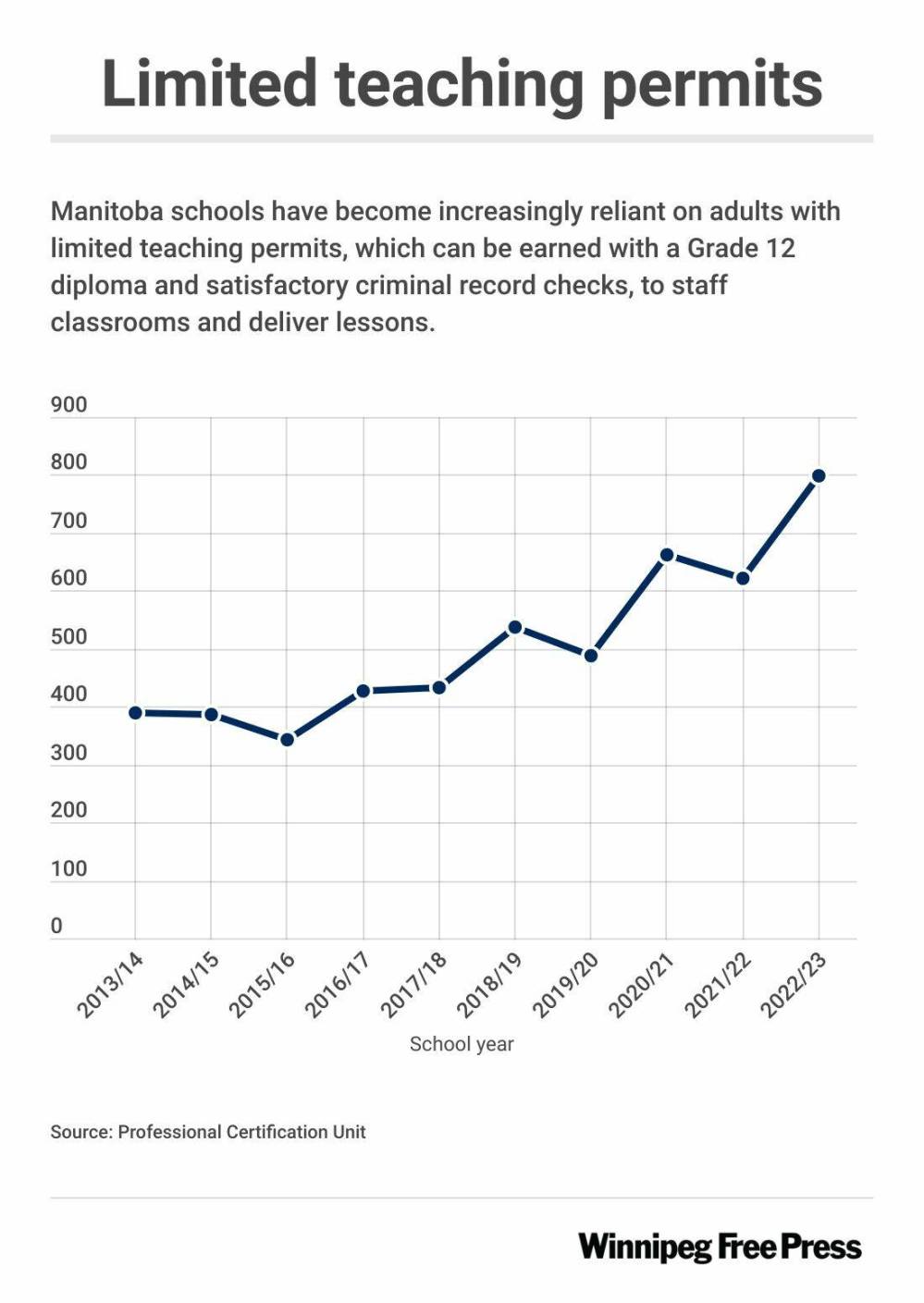 Manitoba schools have become increasingly reliant on adults with limited teaching permits, which can be earned with a Grade 12 diploma and satisfactory criminal record checks, to staff classrooms and deliver lessons.