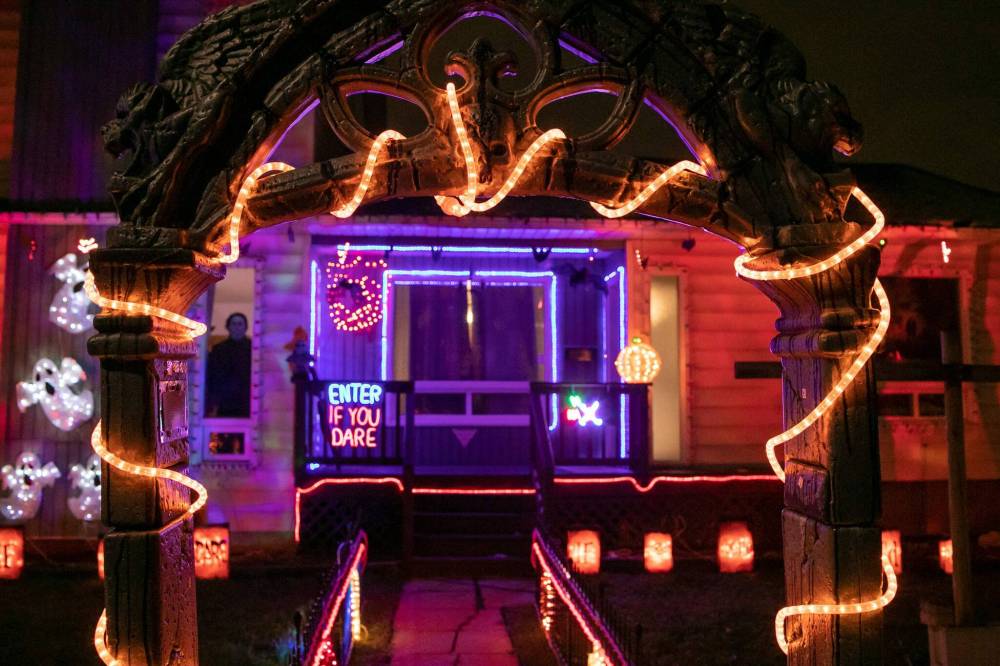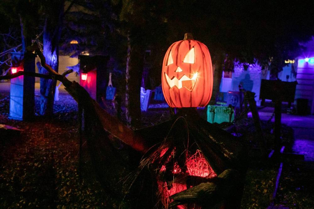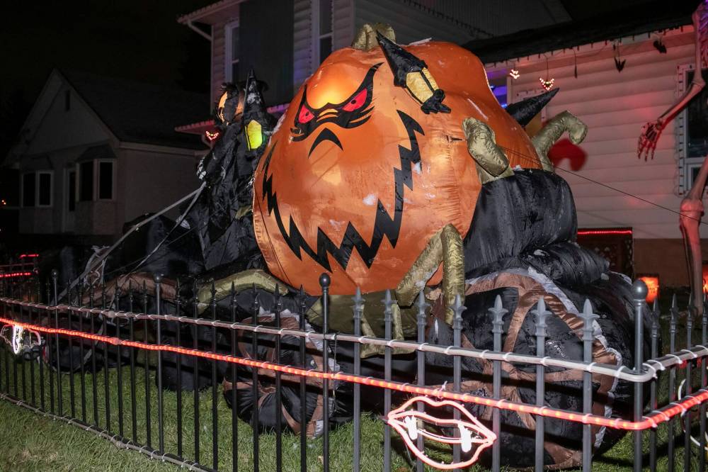 A Jack-o’-lantern glows bright as the house and yard at 5611 Betsworth Ave. The Enright family first started setting up their Halloween yard display, while living in Moose Jaw, Sask., Since moving to Winnipeg, this is the family’s third year in a row they have set up a Halloween yard display on Betsworth Avenue.