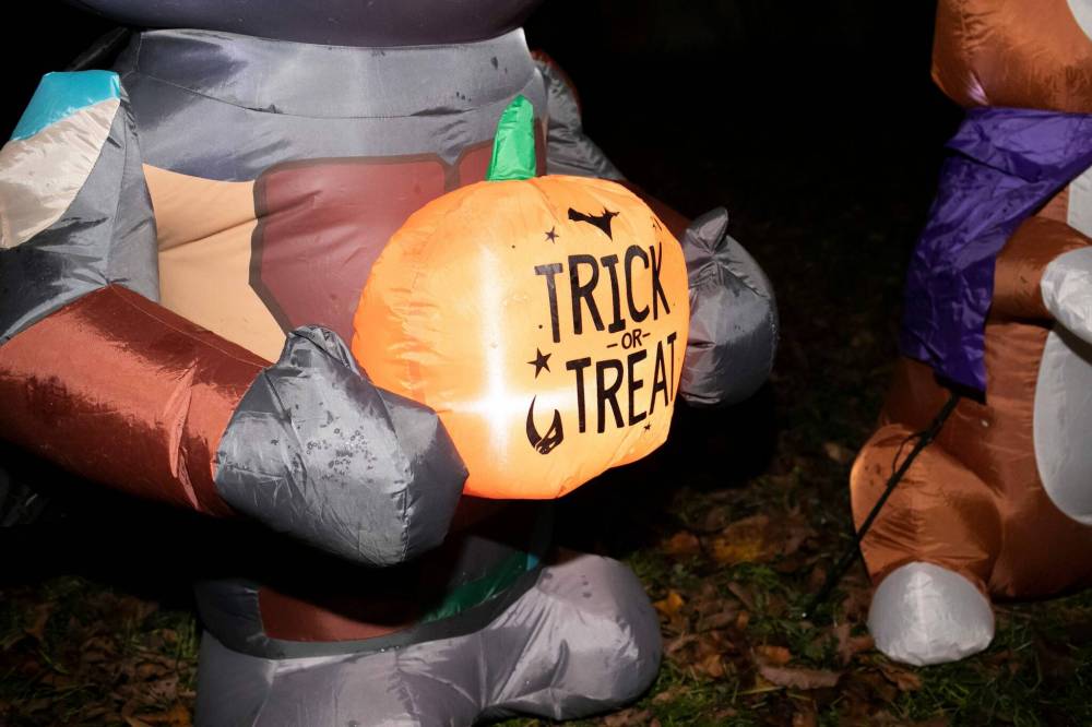 An inflatable jack-o-lantern in the yard at 1011 Elizabeth Rd.